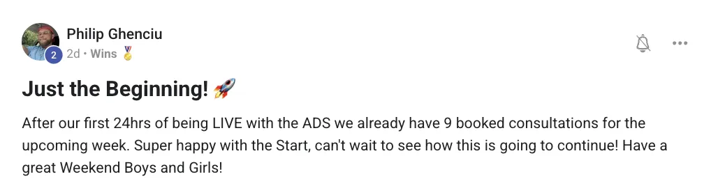 18 consultations in 2 weeks — just from one ad